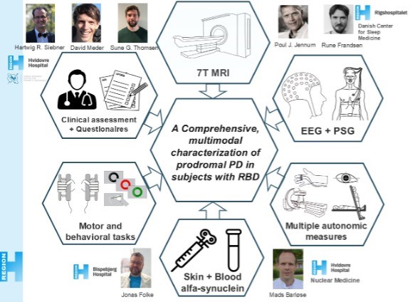 In an upstarting project, we extend the structural imaging to a cohort of patients with REM-sleep behaviour disorder (RBD). Patients with this disorder have a high probability of developing an alpha-synucleopathy such as Parkinson’s disease, Lewy-body dementia or multiple system atrophy. Since the conversion rate to PD is considerably higher than the other synucleinopathies, RBD is often considered a prodromal state of PD. In this collaborative project, we aim to achieve a comprehensive characterization of these patients, combining our structural ultra-high field scanning with neuropsychological and motor performance measures, detailed sleep assessment with polysomnography from the Danish Center for Sleep Medicine at Rigshospitalet Glostrup, a thorough assessment of the autonomic nervous system at the Department for Nuclear Medicine at Hvidovre Hospital and finally measures of alphy-synuclein via blood-samples and skin biopsies.