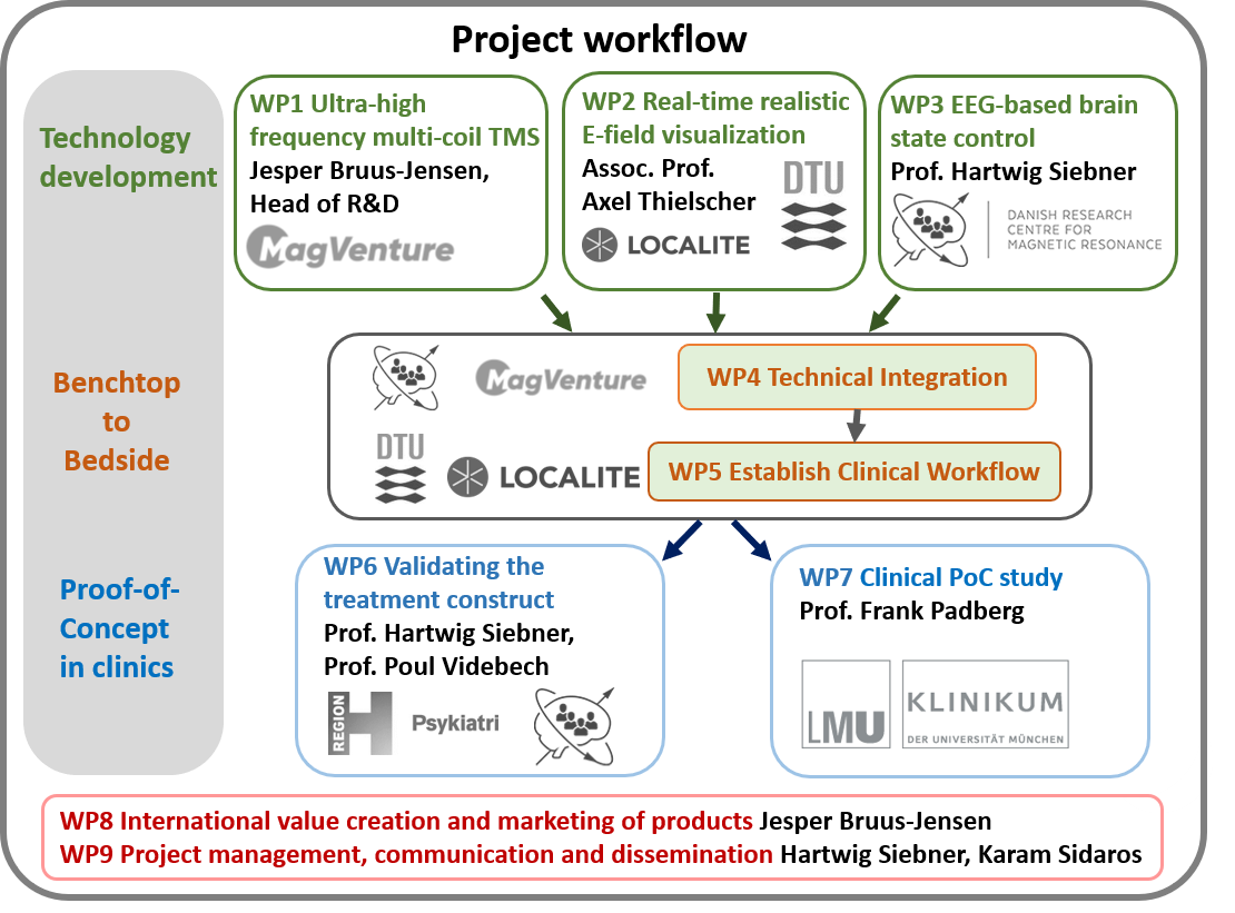 We address the unmet need for personalized treatment in major depressive disorder. Leveraging world-leading Danish industrial and academic expertise on non-invasive brain stimulation and neuroimaging, we will bring a new non-invasive stimulation therapy that accurately and selectively targets the individual dysfunctional brain circuits to the market. Our personalized precision brain-circuit therapy (Precision-BCT) integrates novel brain stimulation and imaging technology in an efficient clinical workflow to provide personalized depression treatment grounded in the underlying circuit- dysfunction. Showcasing Precision-BCT in depression will prompt its application in other major brain diseases.